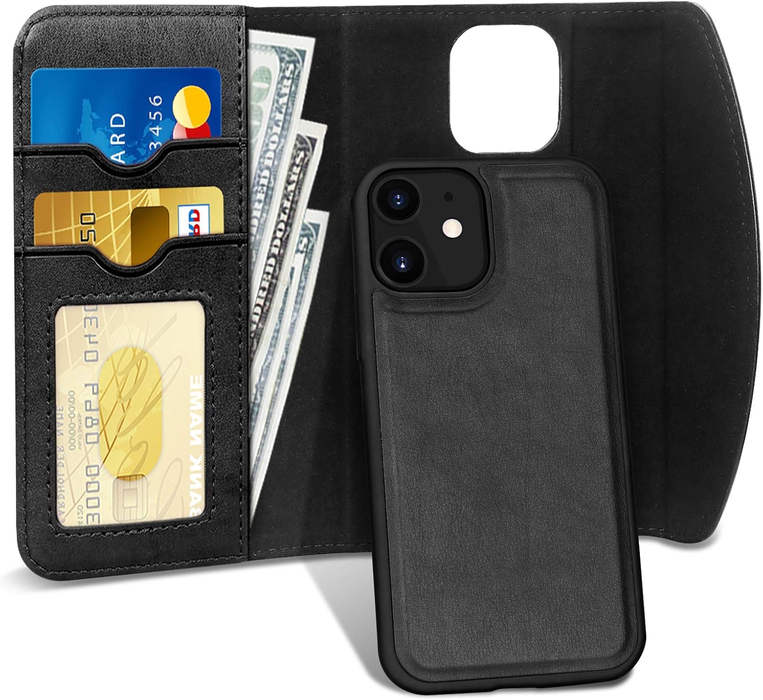 Price review FYY Case Compatible for iPhone 12 Mini 5G 5.4, 2-in-1 Magnetic Detachable Wallet Case [Wireless Charging Support] with Card Slots Folio Case for iPhone 12 Mini 5G 5.4 Black
